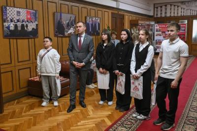 Юрий Афонин рассказал юным гостям фракции о том, что Компартия РФ всегда объединяла людей, которые трудились на научном поприще во имя процветания своего народа и страны. Среди них – величайший советский и российский ученый, лауреат Нобелевской премии по физике Жорес Иванович Алфёров. Ребят особенно впечатлило, что именно его разработки легли в основу технологий, обеспечивающих работу смартфонов и лазерных принтеров. Современные коммунисты достойно продолжают эти традиции: многие депутаты фракции КПРФ обладают глубокими знаниями в естественных, технических, гуманитарных и социальных науках, имеют учёные степени, большой опыт преподавательской работы. Сильнейшая команда у фракции и в сфере аграрной науки, что позволяет партии делать многое для развития российского сельского хозяйства. Один из ведущих специалистов в этой области – заместитель Председателя ЦК КПРФ, академик РАН Владимир Иванович Кашин. Он возглавляет комитет Госдумы по аграрным вопросам. Под руководством Владимира Ивановича КПРФ ведет очень серьезную деятельность по помощи фронту и мирным жителям приграничных территорий, сбору гуманитарных грузов для нужд боевых подразделений. Это – одна из важнейших задач партии. Юрий Вячеславович подчеркнул, что в канун очередной годовщины со дня рождения В.И. Ленина в приграничные территории и на фронт отправится уже 152-й гумконвой КПРФ. Весомый вклад в эту работу вносит и партийная организация родной для ребят Ульяновской области под руководством Алексея Куринного и Айрата Гибатдинова.