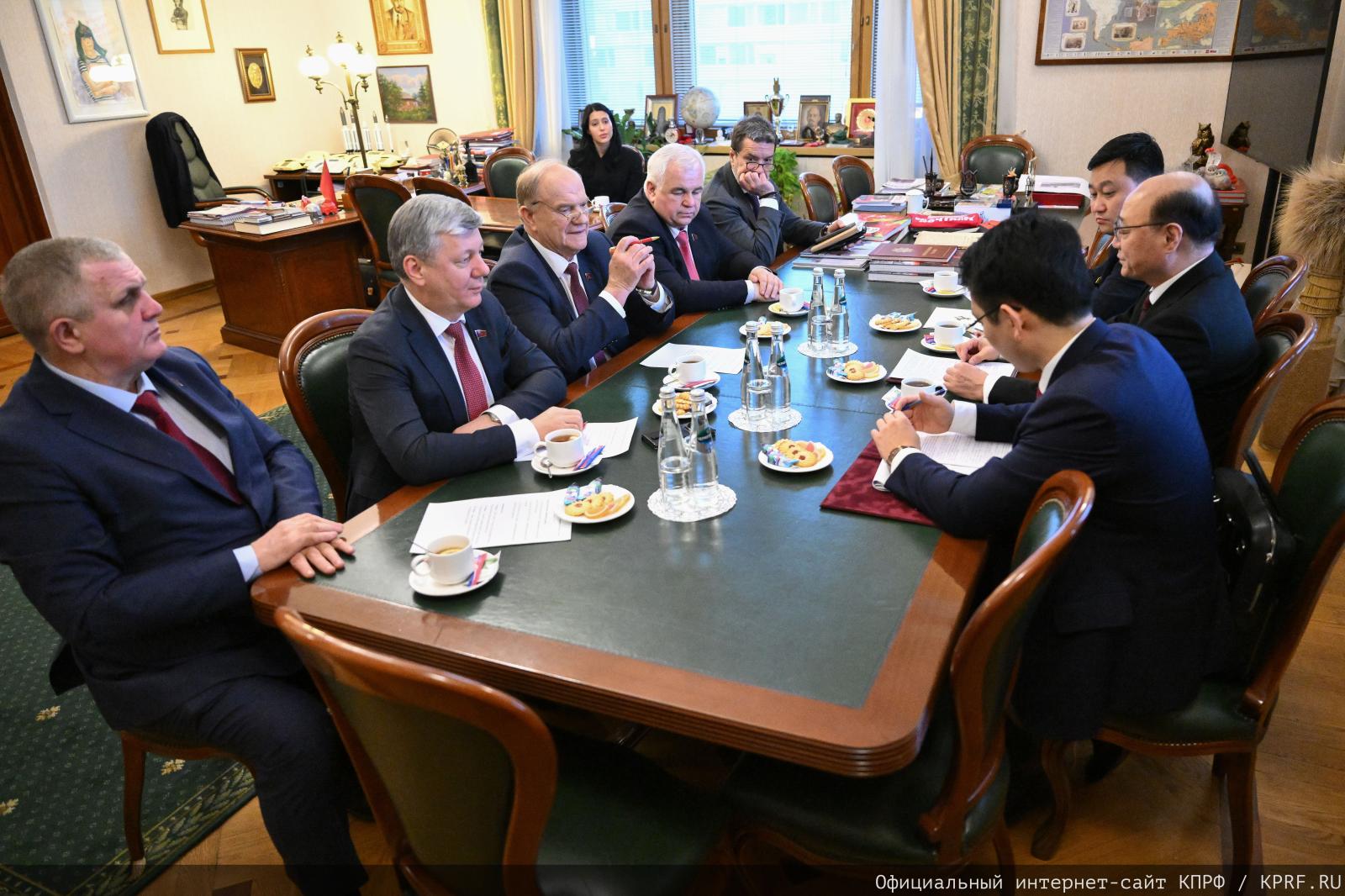 14 апреля в Государственной думе ФС РФ состоялась встреча Председателя Центрального Комитета КПРФ Г.А. Зюганова с Чрезвычайным и Полномочным Послом КНДР в Российской Федерации товарищем Син Хон Чхолем. В состоявшейся беседе приняли участие представители руководства КПРФ Д.Г. Новиков, Н.В. Коломейцев, К.К. Тайсаев, А.А. Ющенко.