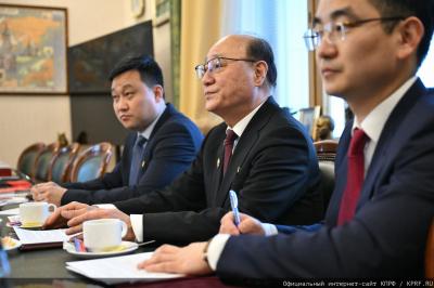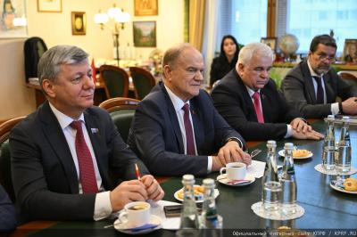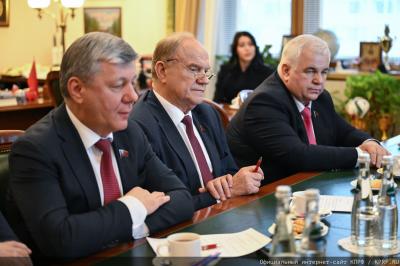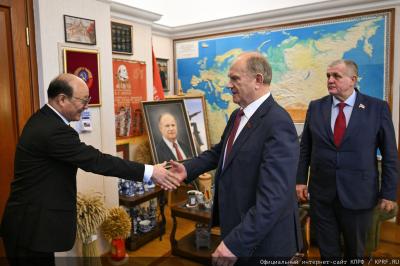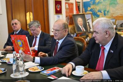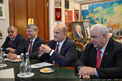 14 апреля в Государственной думе ФС РФ состоялась встреча Председателя Центрального Комитета КПРФ Г.А. Зюганова с Чрезвычайным и Полномочным Послом КНДР в Российской Федерации товарищем Син Хон Чхолем. В состоявшейся беседе приняли участие представители руководства КПРФ Д.Г. Новиков, Н.В. Коломейцев, К.К. Тайсаев, А.А. Ющенко.
