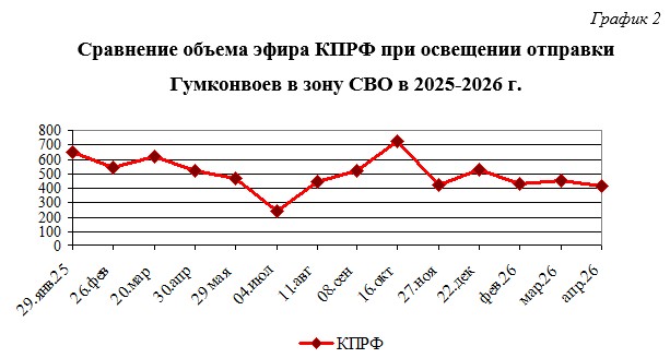 ((фото1))20 апреля 2026 года на пяти центральных федеральных телеканалах («Первый», «Россия», НТВ, ТВЦ и Рен) был проведен мониторинг освещения отправки 152-го Гумконвоя КПРФ.