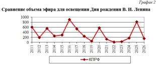 Сравнение объема эфира для освещения Дня рождения В. И. Ленина