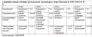 Сравнительная таблица результатов на выборах мэра Москвы в 1996-2013 гг.