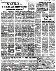 В уходящем году исполнилось 110 лет большевизму как идейно-политическому течению. Мы не прошли мимо этой даты. Но гораздо важнее любого юбилейного мероприятия тот факт, что большевистским духом пропитаны наши программные документы и решения партии. За два десятка лет оппозиционной борьбы КПРФ познала и радость успехов, и горечь поражений. Проходя через испытания, наша партия всегда подтверждала верность трудящимся, преданность своей Родине. Вступая в 2014 год, мы объявили призыв в свои ряды, посвящённый Победе советского народа в Великой Отечественной войне. Идя вперёд, мы смотрим в будущее с надеждой, с верой в свою правоту, с настоящим большевистским оптимизмом.