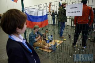 Поводом для этого предложения послужила выставленная в Киеве «интерактивная инсталляция» под названием «Осторожно: русские!» Это клетка, в которой сидят 3 человека в спортивных костюмах с георгиевскими ленточками. Пол клетки завален мусором, одна из стен украшена российским флагом. Они пьют водку, играют на балалайке, хамят посетителям и выкрикивают фразы вроде "Вот Путин придет, он вам покажет!" Отметим, что это «произведение искусства», кроме всего прочего, наглядно демонстрирует нежелание Киева замечать существование значительного числа граждан Украины, считающих себя русскими и не желающих «перековываться» в украинцы и отказываться от своего языка, самосознания и исторической памяти. Именно это нежелание уже привело к восстанию Юго-Востока и отпадению Крыма – но учиться на своих ошибках в Киеве явно не намерены. Что выставка, цель которой – оскорбить полстраны, работает на распад, а не на единство Украины, ее организаторам в голову не приходит.