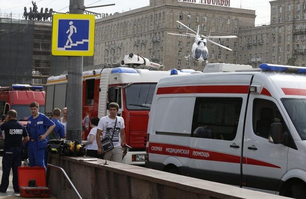 Как передает корреспондент "Интерфакса", на "Парке Победы" продолжают работать десятки медиков и спасателей, на мобильных носилках из перехода метро "Парк Победы" выносят пострадавших. На газоне недалеко от Триумфальной арки готовы к взлету четыре вертолета МЧС России. На посадку заходит еще один вертолет, также на месте работают до 50 карет скорой помощи, автомобили пожарной охраны и спасателей. Со всех сторон звучат сирены.