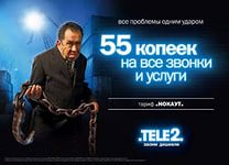 На приложенных к данному тексту фотографиях Вы можете увидеть примеры ранней рекламы «Теле -2». Еще в начале «двухтысячных» появились плакаты, на которых человек с «харизмой» явного бандита наносил прямо в лицо глядящему на плакат сокрушительный удар боксерской перчаткой или замахивался арматурой. Через год-два после появления таких рекламных плакатов появились новые образцы психоаналитической работы под надписями «Нас уже миллион!», а также с приглашением вписаться в семью «мафиози» (то есть ставших сравнительно респектабельными «бандитов из девяностых»).