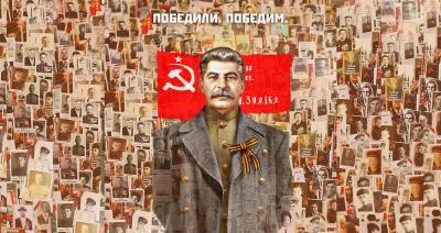Начался разговор с обсуждения рекламных бордов «С Днем Победы», установленных накануне всенародного праздника в «коммунистическом» Новосибирске. На них изображен крупным планом И.В. Сталин за спиной которого видны силуэты советских солдат-победителей.