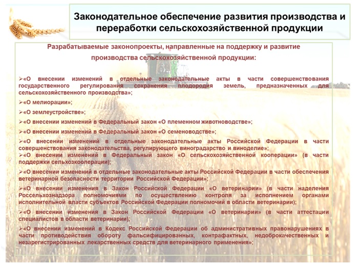 Если говорить о вкладе Государственной Думы, то он должен определяться в первую очередь законодательным обеспечением развития сельского хозяйства.