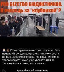Тут на глаза попались очередной аналитико-пропагандистский текст беженца из АП РФ гр. Чеснакова @Chesnakov и многочисленные фото дронов c митинга КПРФ на Суворовской площади с язвительными комментариями «Очередь в Москве за клубникой сегодня»