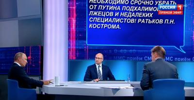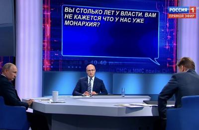При этом картинки на экране во многом создавали ощущение «шизофреничности» происходящего. Путин говорит об «успехах», а на экране – отчаянные вопросы от стоящих на коленях обманутых дольщиков, а то и прямые «наезды» на президента типа "вы столько лет у власти, не кажется, что у нас уже монархия». Вряд ли данный факт может говорить о прямой провокации против президента. Это, наверное, некое извращенное понимание "драйва" у организаторов. Или просто упущение организаторов. Кстати, в прошлом году было то же самое.