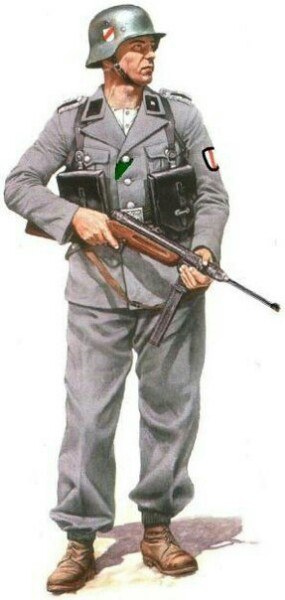 Вот, полюбуйтесь – та же «оппозиционная» символика на каске и на рукаве эсэсовца из 30-й («Белорусской национальной») дивизии СС «Вайсрутения».