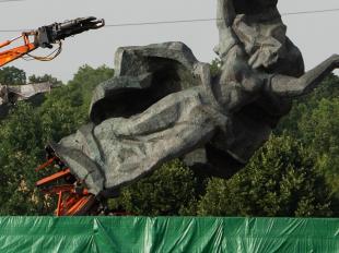 Под величественный памятник, посвящённый памяти всех погибших освободителей Риги от нацистско-фашистских захватчиков, заложили взрывчатку. Несмотря на взрыв, памятник устоял. Тогда он был повержен ковшами экскаваторов. Рухнул на землю и разбился на несколько частей. Расправа с памятником происходила, несмотря на протесты местных жителей: как латышей, так и русских. Протестующих арестовывала полиция.