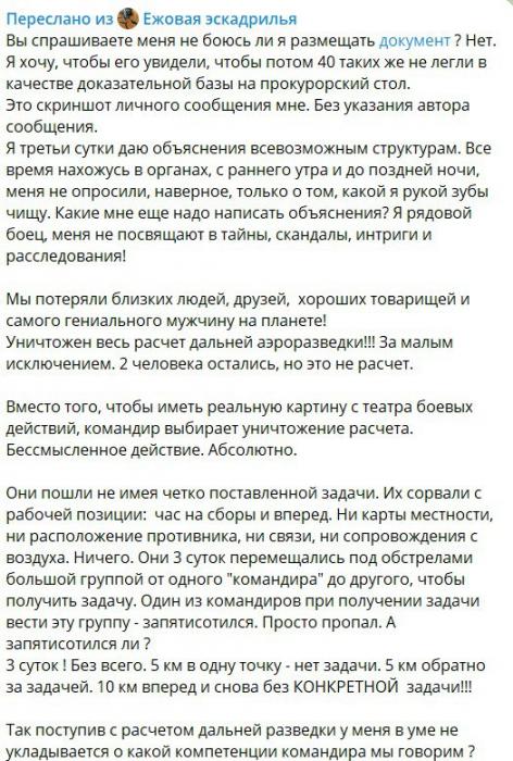 Ситуация, которая складывается вокруг истории трагической гибели бойцов «Гудвина» и «Эрнеста», которых вместе с их расчётом БПЛА отправил на смерть командир продолжает оставаться резонансной.