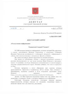 Чтобы помочь в расследовании, направил по данной ситуации депутатский запрос министру обороны.