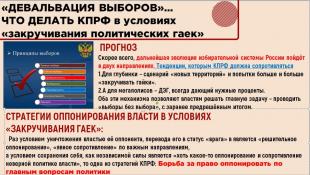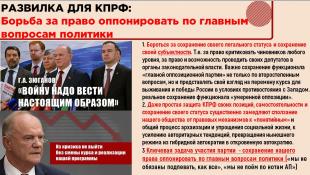 Но даже простая защита КПРФ своих позиций, самостоятельности и сохранение своего оппозиционного статуса существенно замедляют сползание нашего общества от правовых механизмов к «понятийным» и общий процесс архаизации и упрощения социальной жизни.