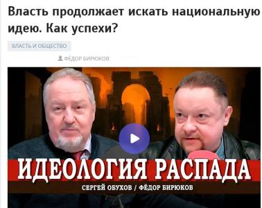 Ведущий: Тема для обсуждения предлагается — с претензией на «глубину» - идет «борьба смыслов». А если говорить точнее – «идеологические поиски», которыми занимается власть все эти годы - «новой российской государственности». А в качестве эксперта выступает депутат Госдумы от фракции КПРФ, член Президиума ЦК, доктор политических наук Сергей Обухов.