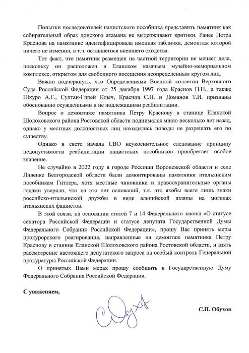 В 2023 году направляю повторный депутатский запрос генпрокурору Краснову (Игорю Викторовичу - прошу не путать): будьте любезны пресечь реабилитацию нацизма в России.