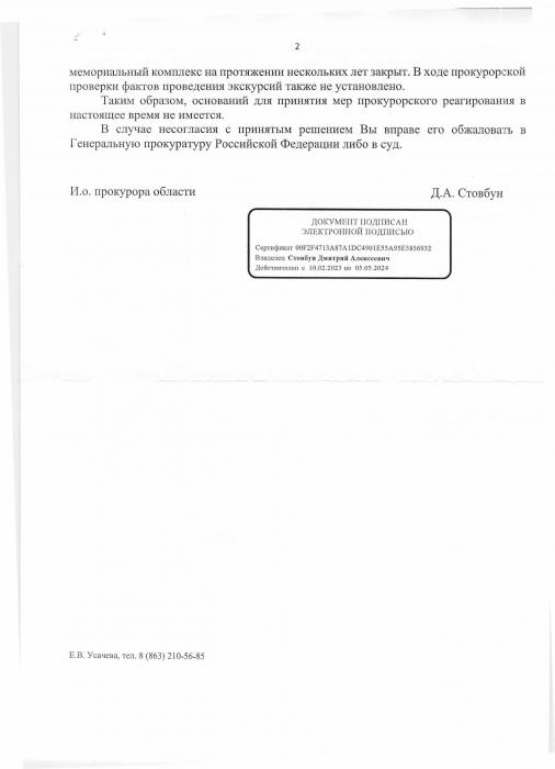 В ответ министерство культуры уведомляет о том, что, конечно же, «правоохранительными органами в отношении мемориала и его собственников проводятся профилактические мероприятия, направленные на… выявление возможной реабилитации нацизма».