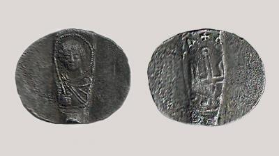 Одна сторона — святой Георгий с копьём; на другой — княжеский знак в виде трезубца с кружком на вершине среднего зубца и следы круговой греческой легенды. Датировка и тип находки связывают её именно с временем до великого княжения Ярослава в Киеве (1010–1019). Опять Новгород в русской истории выступил как «княжий домен», место откуда «есть пошла русская земля», город, где наследник готовился к занятию великокняжеского престола.
