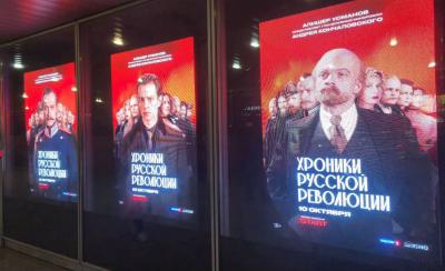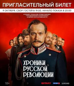 Вчера побывал на премьере нового сериала Андрея Кончаловского "Хроники русской революции". На премьере в "Октябре" всё было в советской эстетике: и кумачовые лозунги, кричащие о великом Октябре (правда, не о революционном, а презентационном), и бюст Ленина. Диссонансом было шампанское и одинокий бюст Николая II, у которого, если кто и фотографировался, то с фразой "Пока Ленин занят, встань здесь".