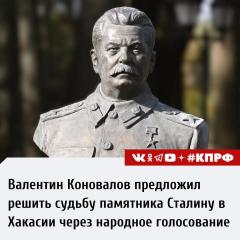 Первый секретарь Хакасского регионального отделения КПРФ, Глава Республики Хакасия Валентин Коновалов заявил о том, что решать вопрос об установке в Абакане памятника Иосифу Виссарионовичу Сталину будут жители республики.
