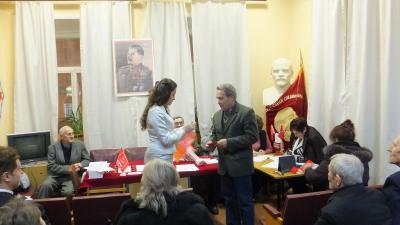 М.В.Костина наградила активистов городского комитета партии и сторонников КПРФ памятными медалями «100 лет газете «Правда» и «В ознаменование 90-й годовщины образования СССР»: