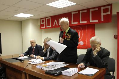 «Я рад всех приветствовать на нашей конференции, посвященной 90-летию образования Союза Советских Социалистических Республик. Конференция проводится Свердловским обкомом КПРФ совместно с Российскими учеными социалистической ориентации. Мы рады приветствовать члена ЦК КПРФ Председателя Центрального Совета РУСО, Заслуженного деятеля науки России, Виктора Степановича Шевелуху.