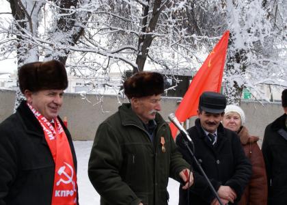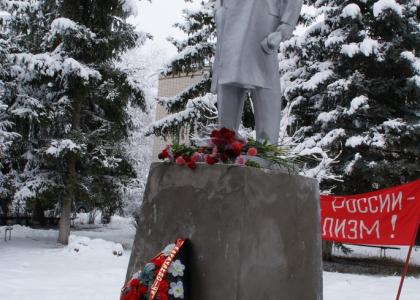 К подножию памятника вождю легли цветы и венок, звучали речи, поздравления, в том числе и с наступающим Новым годом, завершили митинг гимн Советского Союза и общее фотографирование с Лениным.
