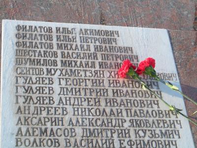 Собравшиеся почтили память погибших в годы войны минутой молчания и возложили цветы к постаменту.
