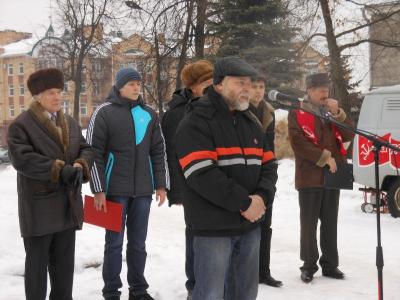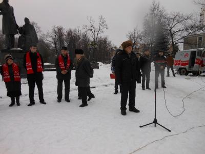 9 февраля в Пскове, у памятника Пушкину и крестьянке, состоялся митинг в поддержку проекта закона Российской Федерации, внесенного фракцией КПРФ в Государственную Думу "О социальном статусе детей войны в Российской Федерации".