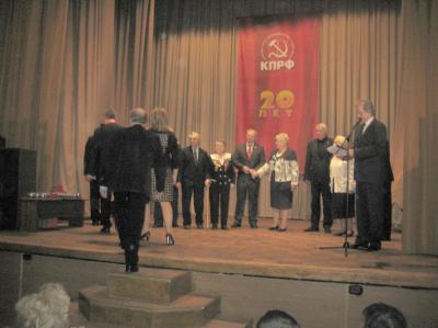 Торжественный вечер, посвященный 20-летию восстановления деятельности Ленинградской организации КПРФ, стал не ностальгической встречей коммунистов, а ярким свидетельством их убежденности в грядущей победе над властью бандитов и олигархов. Это мероприятие было подготовлено совместно Санкт-Петербургским городским и Ленинградским областным комитетами КПРФ.