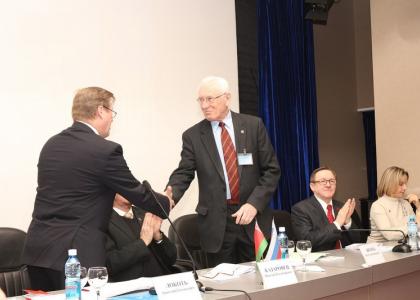 В рамках открытия семинара Парламентского собрания по вопросам сотрудничества двух стран в области фундаментальных исследований лидер новосибирских коммунистов, депутат Госдумы А.Е. Локоть вручил памятную медаль ЦК КПРФ в честь 100-летия Александра Покрышкина видным учетным и парламентариям двух стран. Среди них — председатель СО РАН Александр Асеев и руководитель аппарата Национальной академии наук Беларуси Петр Витязь.