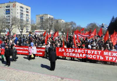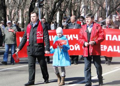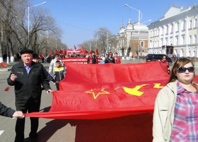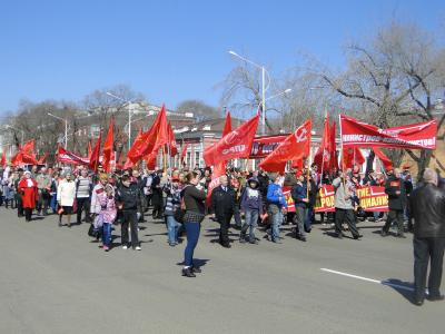 Мы, участники демонстрации и митинга в Благовещенске, поддерживаем участников Всероссийской Первомайской акции КПРФ за права граждан.
