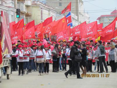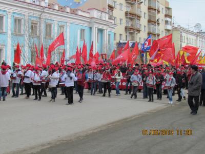 1 Мая тысячи и тысячи горожан вышли на главную улицу Якутска — проспект Ленина, участвуя в общегородской демонстрации. Представительной была колонна КПРФ и ее сторонников.