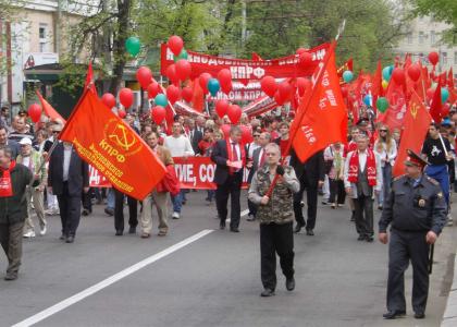 По призыву Коммунистической партии Российской Федерации на первомайскую демонстрацию и митинг под красными знамёнами вышло более двух тысяч воронежцев