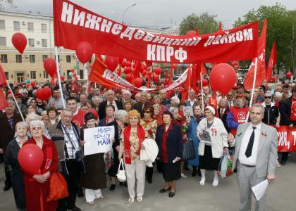 Когда краснознаменное шествие подошло к Никитинской площади, где проводили митинг власть и провластные профсоюзы, почти все стоявшие на площади люди, как по команде, повернулись в сторону коммунистов. Искренние улыбки на лицах, приветственные слова и жесты красноречиво говорили о том, что очень многие из тех, кто пока не решается бросить вызов начальству и взять в руки красные флаги, тем не менее, сердцем с КПРФ и поддерживают её лозунги.