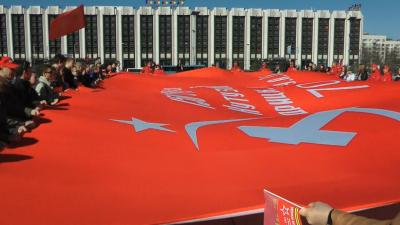 По традиции участники пробега, представители городского отделения КПРФ и Лениского Комсомола и жители Санкт-Петербурга развернули 200-метровую копию Знамени Победы — символа проекта. Все присутствующие смогли прикоснутся к красному полотну. У многих при этом на глазах были слезы, слезы гордости, слезы радости. Сотни тысяч рук прикоснутся к этому Знамени, прежде чем 9 мая, в День Великой Победы, оно будет торжественно вынесено на Красную площадь в городе Москве.