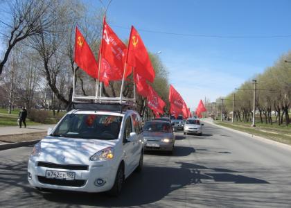Под майским ярким солнцем ветер взметнул красные флаги - колонна из шестнадцати автомобилей двинулась от Пермского краевого комитета КПРФ по улицам Перми. Автопробег, стартовавший 5 мая, посвящённый 68-й годовщине Победы Советского народа над фашистской Германией, организованный Пермским краевым комитетом КПРФ, стартовал! Колонна машин под красными флагами Советского Союза, КПРФ и конечно, флагами Победы проехала по районам города по местам воинской славы, по местам памяти о трудовом подвиге пермяков, ковавших победу в тылу. В автопробеге приняли участие коммунисты районов города и даже Пермского края.