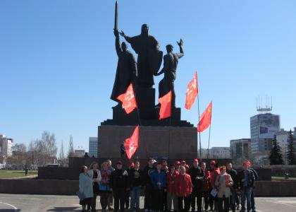 И снова затрепетали над колонной алые флаги – автопробег продолжился по улицам города, в самый его центр к памятнику «Героям фронта и тыла от благодарных потомков». Здесь об истории создания памятника, о его образах – рабочем, воине и матери-Родине словами самого автора, скульптора, лауреата Государственной премии СССР, В.М.Клыкова рассказала З.В.Токарева. Заведующая идеологическим отделом крайкома Л.Б.Банникова привела множество документальных свидетельств того, как под руководством коммунистической партии строилась оборона страны, как в кратчайшие сроки в Пермь, опорный край державы, в соответствии с Постановлениями Государственного Комитета Обороны СССР, эвакуировали заводы и предприятия.