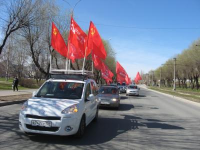 Под майским ярким солнцем ветер взметнул красные флаги - колонна из шестнадцати автомобилей двинулась от Пермского краевого комитета КПРФ по улицам Перми. Автопробег, стартовавший 5 мая, посвящённый 68-й годовщине Победы Советского народа над фашистской Германией, организованный Пермским краевым комитетом КПРФ, стартовал! Колонна машин под красными флагами Советского Союза, КПРФ и конечно, флагами Победы проехала по районам города по местам воинской славы, по местам памяти о трудовом подвиге пермяков, ковавших победу в тылу. В автопробеге приняли участие коммунисты районов города и даже Пермского края.
