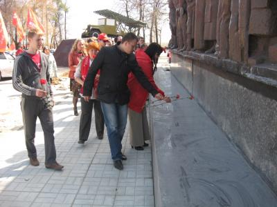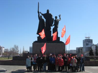 И снова затрепетали над колонной алые флаги – автопробег продолжился по улицам города, в самый его центр к памятнику «Героям фронта и тыла от благодарных потомков». Здесь об истории создания памятника, о его образах – рабочем, воине и матери-Родине словами самого автора, скульптора, лауреата Государственной премии СССР, В.М.Клыкова рассказала З.В.Токарева. Заведующая идеологическим отделом крайкома Л.Б.Банникова привела множество документальных свидетельств того, как под руководством коммунистической партии строилась оборона страны, как в кратчайшие сроки в Пермь, опорный край державы, в соответствии с Постановлениями Государственного Комитета Обороны СССР, эвакуировали заводы и предприятия.