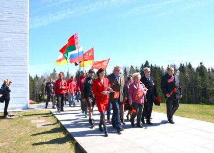 Присутствующие возложили цветы и венки к мемориалу «Партизанская слава» и почтили память павших минутой молчания. Затем у подножия мемориала «Партизанская слава» была развернута самая большая в мире копия знамени Победы – площадью 200 квадратных метров.