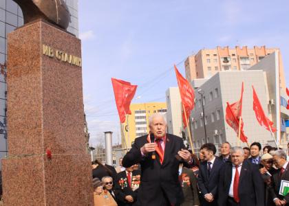 Главный идеолог Якутского рескома КПРФ Айаан ВАСИЛЬЕВ, открывая торжественное мероприятие, отметил, что установка памятника Сталину именно сегодня, накануне Дня Великой Победы, — это дань искреннего уважения и безграничной благодарности великому полководцу, Верховному Главнокомандующему, под мудрым руководством которого весь советский народ и его Вооруженные Силы одержали героическую победу в жесточайшей войне против немецко-фашистских агрессоров.