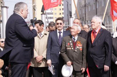 В митинге также с пламенными речами выступили участник Великой Отечественной войны, заслуженный работник культуры ЯАССР, отличник здравоохранения СССР, член Союза журналистов РФ и РС(Я) Анисим ПРОКОПЬЕВ; ветеран тыла Анна ПУХОВА, первый секретарь Якутского республиканского комитета ЛКСМ РФ Нюргун ДАНИЛОВ, генеральный директор ОАО «Алмазы Анабара», депутат Государственного Собрания (Ил Тумэн) РС(Я) Матвей ЕВСЕЕВ, депутат Государственного Собрания (Ил Тумэн) РС(Я) Дмитрий НАУМОВ и первый секретарь Якутского рескома КПРФ Виктор Губарев.