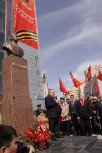Главный идеолог Якутского рескома КПРФ Айаан ВАСИЛЬЕВ, открывая торжественное мероприятие, отметил, что установка памятника Сталину именно сегодня, накануне Дня Великой Победы, — это дань искреннего уважения и безграничной благодарности великому полководцу, Верховному Главнокомандующему, под мудрым руководством которого весь советский народ и его Вооруженные Силы одержали героическую победу в жесточайшей войне против немецко-фашистских агрессоров.