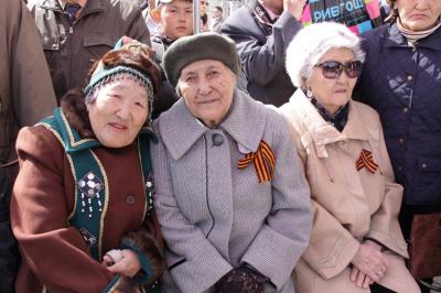 Затем Айаан ВАСИЛЬЕВ предоставил слово участнику Великой Отечественной войны, кавалеру двух орденов Отечественной войны I и II степени Георгию АПРОСИМОВУ, недавно отметившему своё 90-летие. Он сказал, что фронтовики-якутяне, сегодня защищая Сталина, защищают прежде всего русский народ. Русский народ должен воспрянуть ото сна и, гордо распрямив плечи, встать на свою защиту. Не будет нормальной жизни, если народ не заступится за Сталина.