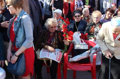 Внимание собравшихся и прохожих привлекает колонна под кумачёвыми знамёнами. Это представители местных отделений КПРФ и комсомола пришли сюда, чтобы отдать дань уважения и памяти ветеранам войны, детям войны, выразить свою солидарность в этот праздничный час со всеми жителями города. Светлеют лица ветеранов: красный цвет – это их цвет. Под такими знамёнами они ковали Победу. С благодарностью берут они из рук своих правнуков газету «Орловская искра» – печатный орган областного отделения КПРФ и улыбаются «красному отряду».