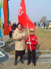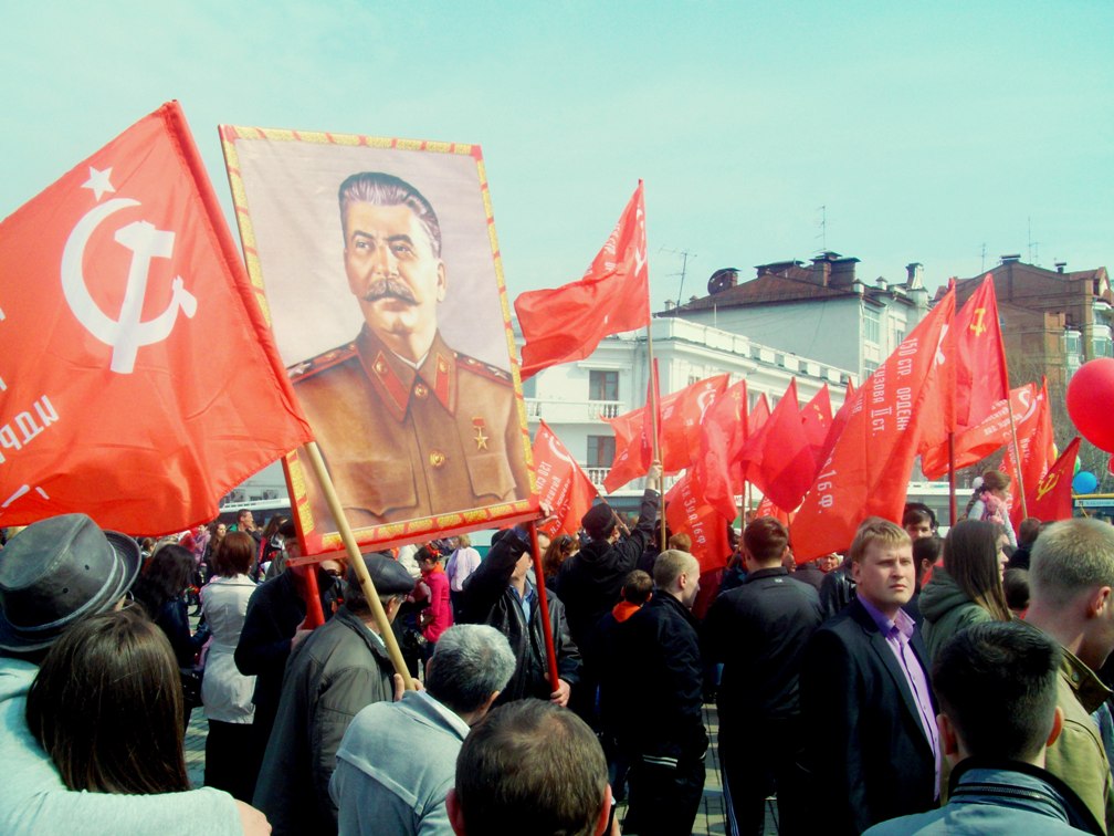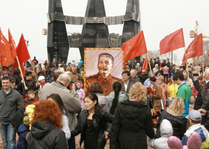 Но на многолюдных улицах не было видно символов Великой Победы – ни Знамени Победы, водруженного над рейхстагом в мае 1945 года, ни государственных флагов СССР, ни портретов Верховного главнокомандующего И.В. Сталина и полководцев Победы… Зато городские власти щедро снабдили хабаровчан картонными триколорами, а над Законодательной Думой был вывешен красный флаг со звездой, но без серпа и молота. И лишь после того, как на площади появилась краснознаменная колонна коммунистов во главе с портретом Генералиссимуса И.В. Сталина, жители Хабаровска наконец-то смогли почувствовать, что в город пришел День Победы!