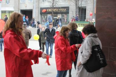 9 мая свердловские комсомольцы провели ежегодную акцию "Я знаю, как выглядит Знамя Победы". Всем, кто шёл на парад, вручались красные ленточки с серпом и молотом и шарики с эмблемой КПРФ. Буквально за двадцать минут разошлись несколько сотен лент и красных шариков. Прохожие охотно брали ленточки, повязывали их на одежду, брали шарики для детей.