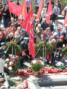 Официальное празднование было организовано властными структурами, сформированными политической партией, представители которой пытаются ныне разыграть патриотическую карту. Однако невозможно забыть, как господа, занимающие высшие посты в государстве, несколько лет назад позволяли себе цинично утверждать, что наши солдаты совершали подвиги в годы войны, потому что за их спинами, якобы, стояли заградотряды. Все помнят, как эти деятели умудрились сидя принимать военный парад, как они допустили прохождение по Красной площади подразделений армий стран, входящих в агрессивный блок НАТО. Именно с их подачи подготовлено развертывание в центре России, в городе Ульяновске, базы НАТО. Этот акт попрания суверенитета России они стыдливо прикрывают россказнями о некоей «площадке подскока».